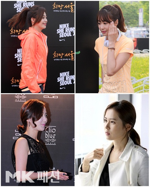 ÀÌ¿µÀº°ú ¿ÕÁöÇý´Â ¸Ó¸®¸¦ ³ôÀÌ ¿Ã·Á ¹­¾î Ȱµ¿¼ºÀ» °­Á¶ÇÑ Æ÷´ÏÅ×ÀÏ ½ºÅ¸ÀÏÀ» ¼±º¸¿´´Ù. ÀÌ¿µÀºÀº ÇÑ ½ºÆ÷Ã÷ ºê·£µåÀÇ Çà»çÀå¿¡¼­ ±ä ¾Õ¸Ó¸®¸¦ ³²°ÜµÎ°í µÞ¸Ó¸®¸¸ ´ÜÁ¤ÇÏ°Ô ¿Ã·Á ¹­Àº ¸ð¾çÀ¸·Î ¾ó±¼À» ´õ¿í °¼¸§ÇÏ°Ô º¸À̵µ·Ï ¿¬ÃâÇß´Ù.