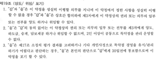 À§¿Í °°ÀÌ º»»ç°¡ °è¾à ÇØÁö¸¦ °áÁ¤ÇÏ¸é Æ¯¾àÁ¡ÁÖ¿ÍÀÇ »çÀü ÇùÀǾøÀÌ ÀϹæÀûÀ¸·Î Á¡ÁÖ ±³Ã¼ ¹× °Å·¡ ÇØÁö¸¦ Å뺸ÇÑ´Ù´Â °ÍÀÌ À̵éÀÇ ¾ê±â´Ù. ÀÌ¿¡ ¹Ý¹ßÇÏ´Â °æ¿ì´Â »óǰ °ø±Þ Áß´Ü, ¾àÁ¤±â°£ Ãà¼Ò, ÄÄÇ»ÅÍ Àü»ê¸ÅÃâÀԽýºÅÛ Á¤Áö, ¹æ¹®ÆÇ¸Å¿ø ÇØÅÂÇàÀ§ Á¶Àå, Æ÷±â°¢¼­ °­¿ä µîÀÇ È¾Æ÷¸¦ ´çÇß´Ù°í. ¡°º»»çÀÇ ´«¹Û¿¡ ÇÑ ¹ø ³ª¸é ¾î¶² ÀÌÀ¯·Îµç °è¾à ÇØÁö°¡ ÀÌ·ïÁö´Â °ÍÀÌ ´Ù¹Ý»ç¡±¶ó´Â °ÍÀÌ´Ù.