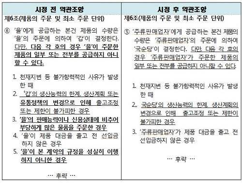 [¸Å°æ´åÄÄ MKÆÐ¼Ç ÇѼ÷ÀÎ ±âÀÚ] °øÁ¤°Å·¡À§¿øÈ¸(ÀÌÇÏ °øÁ¤À§)°¡ (ÁÖ)±¹¼ø´çÀÇ ¹°Ç°°ø±Þ°è¾à¼­ Áß ÀÚÀÇÀûÀ¸·Î ´ë¸®Á¡ÀÇ ¹°Ç°°ø±ÞÀ» Áß´ÜÇÒ ¼ö ÀÖµµ·Ï ÇÑ Á¶Ç×°ú ºÎ´çÇÏ°Ô ÂªÀº ÇÏÀڰ˼ö±â°£À» ¼³Á¤ÇØ ÇÏÀڴ㺸åÀÓÀ» ¸éÃ¥ÇÏ´Â Á¶Ç× µî ºÒ°øÁ¤ ¾à°üÀ» ½ÃÁ¤Çϵµ·Ï Çß´Ù°í 13ÀÏ ¹àÇû´Ù.