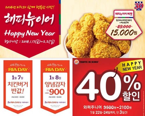 KFC´Â 17ÀϺÎÅÍ ³»´Þ 2ÀÏ ¿ÀÀü 11½ÃºÎÅÍ ¿ÀÈÄ 5½Ã±îÁö ¡®2014 ÇØÇÇ´ºÀ̾ À̺¥Æ®¸¦ ÁøÇàÇÑ´Ù. À̹ø Çà»ç¸¦ ÅëÇØ Á¤°¡ 23,000¿ø »ó´çÀÇ Ä¡Å²°ú ºñ½ºÄÏ ±¸¼ºÀÇ ¹Ú½º¸¦ 15,000¿ø¿¡ ÆÇ¸Å, 5,700¿øÀÇ Æ®À§½ºÅÍ ¼¼Æ®¸¦ 3,900¿ø¿¡ ÆÇ¸ÅÇÑ´Ù°í ÀüÇß´Ù.