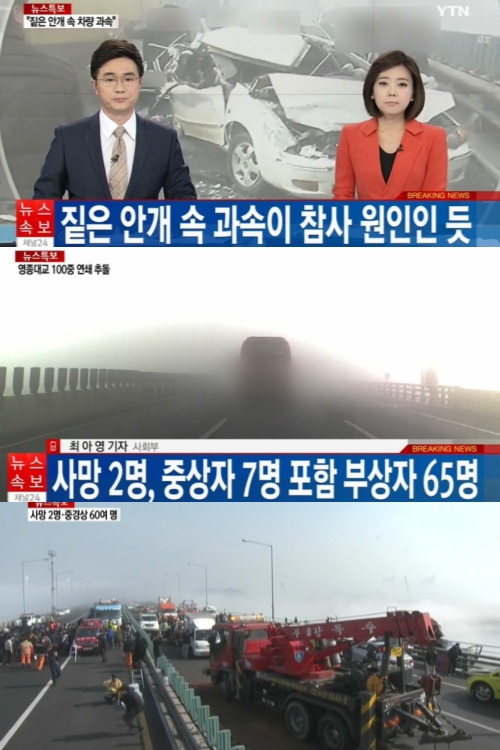 ¿µÁ¾µµ´Â ÃÑ ±æÀ̰¡ 4km¸¦ ³Ñ´Â ´ëÇü ´Ù¸®·Î, ¹Ù´Ù À§¿¡ ÀÖ¾î ÇØ¹«°¡ ÀÚÁÖ ³¤´Ù. À̳¯ ¿ÀÀü ¿µÁ¾´ë±³´Â £Àº ¾È°³ ¿¡ È۽ο© °¡½Ã°Å¸®°¡ 10mÁ¤µµ¹Û¿¡ µÇÁö ¾Ê¾Æ °ÅÀÇ ¾ÕÀÌ º¸ÀÌÁö ¾Ê¾Ò´Ù. Æò¼Òº¸´Ù ¼Óµµ¸¦ ÁÙ¿© 80km·Î ´Þ·Á¾ß ÇÏÁö¸¸ Â÷·®µéÀº °ú¼Ó°ú Ãß¿ùÀ» ÇÑ °ÍÀ¸·Î ÀüÇØÁ³´Ù. ´« ¶§¹®¿¡ »Ñ¸° ¿°È­Ä®½·ÀÌ ³ìÀº µÚ ¾È°³¿Í ÇÔ²² ¾ó¾î µµ·Î°¡ ¹Ì²ô·¯¿ü´Ù´Â Á¦º¸µµ ÀÖ¾ú´Ù.