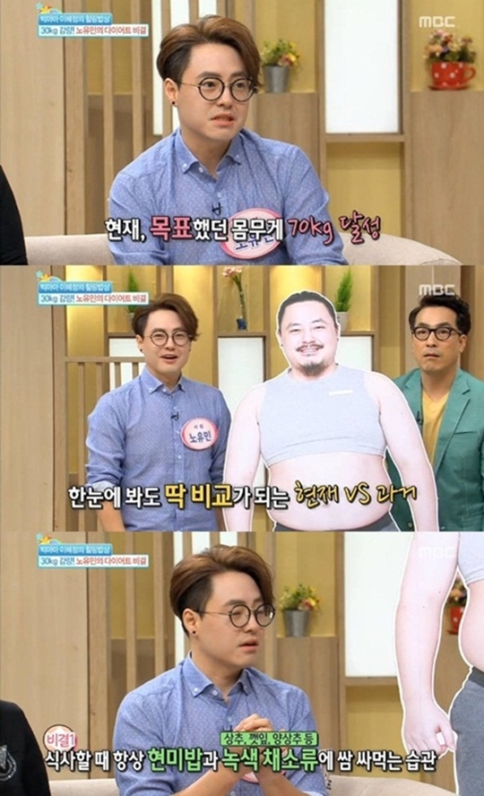 ³ëÀ¯¹ÎÀº ÃÖ±Ù 98kg¿¡¼­ 70kgÀ¸·Î 3°³¿ù ¸¸¿¡ üÁß 28kgÀ» °¨·®Çß´Ù. ³ëÀ¯¹ÎÀº ÃÖ±Ù MBC ¡®±âºÐ ÁÁÀº ³¯¡¯¿¡ Ãâ¿¬ÇØ ´ÙÀÌ¾îÆ® ½Ä´Ü ¹æ¹ýÀ¸·Î ¡°Çö¹Ì¹äÀ» ¸Ô°í ¹ä ¸ÔÀ» ¶§ »óÃß, ²¢ÀÙ, ¾ç»óÃß µî ä·á·ù¿¡ ½Ó ½Î¸Ô¾ú´Ù¡±¶ó°í ¸»Çß´Ù.
