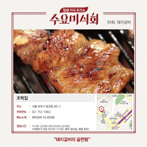 Áö³­´Þ 21ÀÏ ¹æ¼ÛµÈ ÄÉÀ̺íTV tvN ¿¹´ÉÇÁ·Î±×·¥ ¡®¼ö¿ä¹Ì½Äȸ¡¯ µÅÁö°¥ºñ Æí¿¡¼­´Â ¹®´Ý±â Àü¿¡ ²À °¡¾ßÇÒ ¸ÀÁý Áß ÇÑ °÷À¸·Î ¼­¿ï ¸¶Æ÷±¸ ¿ë°­µ¿¿¡ À§Ä¡ÇÑ ¡®Á¶¹ÚÁý¡¯ÀÌ ¼Ò°³µÆ´Ù.