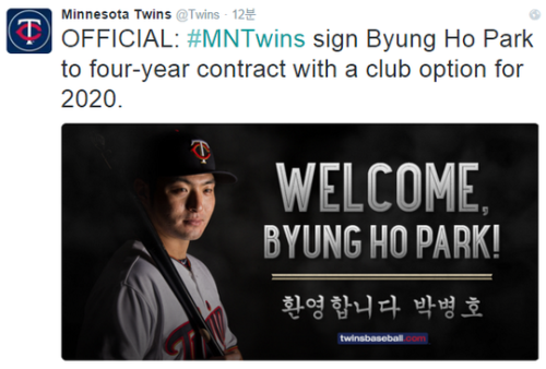 [½ÃÅ©´º½º ÃÖÁ¤Àº ±âÀÚ] ¹Úº´È£(29)°¡ ¹Ì³×¼ÒŸ Æ®À©½º¿Í 4³â 1200¸¸ ´Þ·¯(¾à 139¾ï ¿ø)¿¡ °è¾àÇÑ ¼Ò½ÄÀÌ ÀüÇØÁø °¡¿îµ¥ ¹Ì³×¼ÒŸ Æ®À©½ºÀÇ È¯¿µÀλ簡 °ü½ÉÀ» ¸ðÀº´Ù.