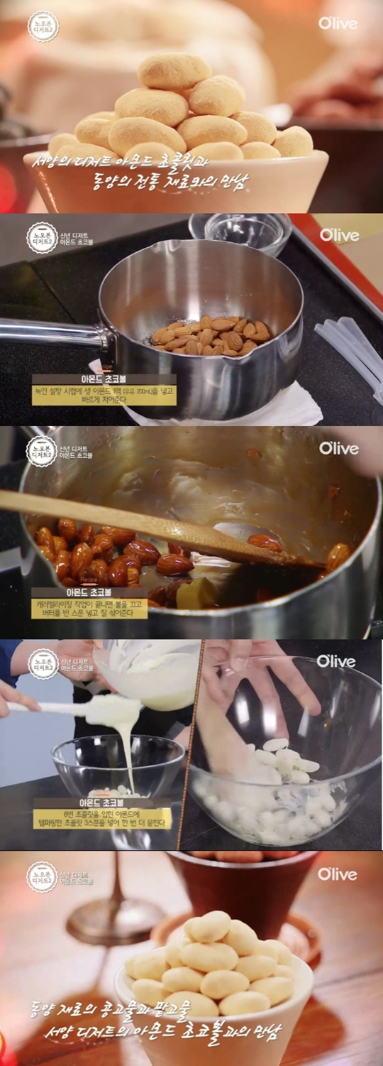 ij·¯¸á ¶óÀÌ¡ÀÌ ³¡³­ ¾Æ¸óµå¸¦ ½Ç¸®ÄÜ ÆÐµå¿¡ ¿Ã·ÁÁØ´Ù. ½Ç¸®ÄÜ ÆÐµå À§¿¡ ÆîÃÄ ³õÀº ¾Æ¸óµå¸¦ ¼ù°¡¶ôÀ» ÀÌ¿ëÇØ ÀÏÀÏÀÌ ¶¼¾îÁØ´Ù. È­ÀÌÆ® ÃÊÄݸ¯ 2ÆÑ(¿ìÀ¯ 200ml¸¦ ÁغñÇÑ´Ù. ÃÊÄݸ´Àº 30ÃÊ ³ì¿©¼­ Àú¾îÁØ´Ù. ÀÌ °úÁ¤À» 3¹ø Á¤µµ ¹Ýº¹ÇÑ´Ù. ÅÛÆÛ¸µÇÑ ÃÊÄݸ´À» 3½ºÇ¬ Á¤µµ ¶°¼­ ij·¯¸á ¶óÀÌ¡ȭµÈ ¾Æ¸óµå¿¡ ³Ö°í ¼¯¾îÁØ´Ù. ÃÊÄݸ´À» ÀÔÈù ¾Æ¸óµå´Â ³ÃÀå°í¿¡ 1ºÐ Á¤µµ ³Ö¾îµÐ´Ù.