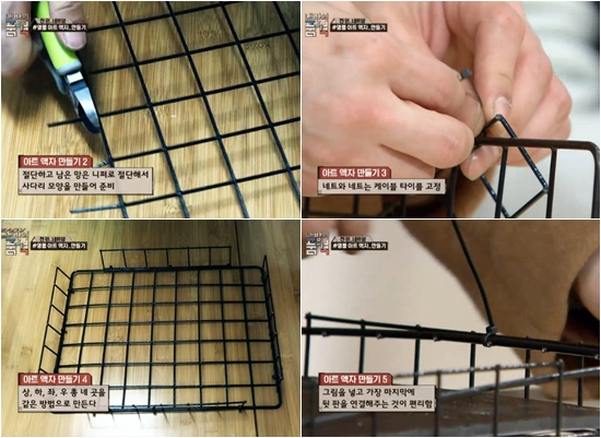 ¸ÕÀú ³×Æ®¸ÁÀÇ Å׵θ®¸¦ ´ÏÆÛ·Î ÀüºÎ Àß¶óÁØ´Ù. Àý´ÜÇÏ°í ³²Àº ¸ÁÀº ´ÏÆÛ·Î Àý´ÜÇØ¼­ »ç´Ù¸® ¸ð¾çÀ¸·Î ÁغñÇÑ´Ù. ³×Æ®¿Í ³×Æ®´Â Å×ÀÌÇà ŸÀÌ·Î ºýºýÇÏ°Ô Á¶¿©¼­ »óÇÏÁ¿츦 °íÁ¤ÇÑ´Ù. ¸¶Áö¸·À¸·Î ¾×ÀÚ ¼Ó¿¡ ±×¸²À» ³ÖÀº µÚ ÄÉÀ̺í ŸÀÌ·Î µÞÆÇÀ» °íÁ¤½ÃÄÑÁÖ¸é ¾×ÀÚ°¡ ¿Ï¼ºµÈ´Ù.