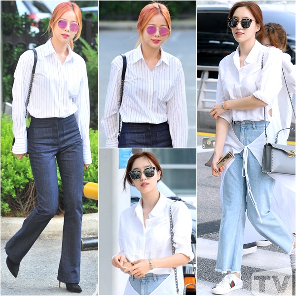 EXID ¼ÖÁö´Â Èò»ö ½ºÆ®¶óÀÌÇÁ ¼ÅÃ÷¸¦ µ¥´Ô ÇÏÀÌ¿þÀ̽ºÆ® ¿ÍÀÌµå ÆÒÃ÷ ¾È¿¡ ³Ö¾î ÀÔ°í ºí·¢ ÇÏÀÌÈúÀ» ´õÇØ ½ÃÅ©ÇÏ°Ô ¿¬ÃâÇß´Ù. ¿©±â¿¡ ÇÎÅ© Ä÷¯ÀÇ ¹Ì·¯ ¼±±Û¶ó½º¿Í ºí·¢ ¹Ì´Ï ¹éÀ¸·Î ·èÀÇ ¿Ï¼ºµµ¸¦ ³ô¿´´Ù.