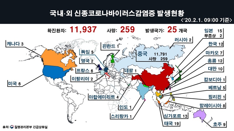 ±¹³» È®ÁøÀÚ´Â 2¿ù 1ÀÏ ¿À´Ã 12¹øÂ° È®ÁøÀÚ°¡ ³ª¿À¸é¼­ ÃÑ 12¸í±îÁö ´Ã¾î³­ °¡¿îµ¥ Àü ¼Î°è ÃÑ 11925¸í Áß Áß±¹¿¡¼­¸¸ 11791¸íÀÌ´Ù. »ç¸ÁÀÚ 259¸í ¿ª½Ã Áß±¹¿¡¼­¸¸ ¹ß»ýÇß´Ù.