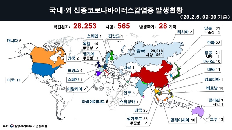 °¨¿° ¹ß¿øÁöÀÎ Áß±¹Àº È®ÁøÀÚ 2,8018¸í, »ç¸Á 563¸íÀ¸·Î ¾îÁ¦ Áý°èµÈ È®ÁøÀÚ 2,4324¸íÀ¸·Î ºü¸¥ °¨¿°À²À» ½Ç°¨ÄÉ ÇÑ´Ù.