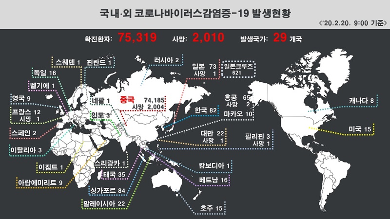 ±¹¿Ü¿¡¼­´Â 20ÀÏ ¿ÀÀü 9½Ã ±âÁØ È®ÁøÀÚ ÃÑ 75,237¸í, »ç¸Á 2,010¸íÀÌ´Ù.