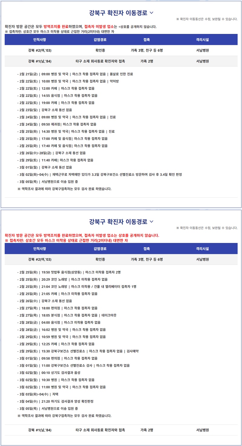 [´õ¼¿·´ ÇѼ÷ÀÎ ±âÀÚ] °­ºÏ±¸Ã»Àº ½ÅÁ¾ Äڷγª¹ÙÀÌ·¯½º °¨¿°Áõ-19 È®Áø ÆÇÁ¤À» ¹ÞÀº È®ÁøÀÚ 2¸íÀÇ µ¿¼± ¹× Á¢ÃËÀÚµéÀ» °ø°³Çß´Ù.