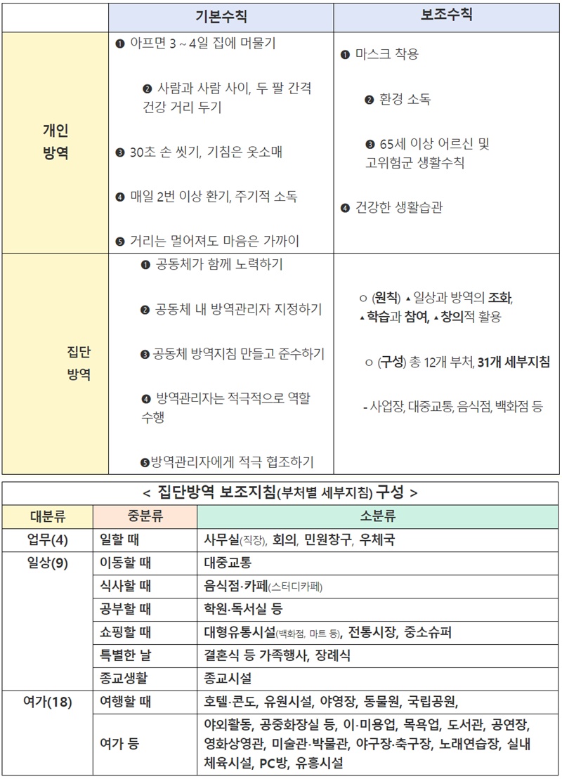 »ýȰ ¼Ó °Å¸® µÎ±â´Â ÀÏ»ó»ýȰ°ú °æÁ¦¡¤»çȸ Ȱµ¿À» ¿µÀ§Çϸ鼭µµ °¨¿° ¿¹¹æ Ȱµ¿À» öÀúÈ÷ Áö¼ÓÇÏ´Â »õ·Î¿î ÀÏ»óÀÇ Àå±âÀû, Áö¼ÓÀû ¹æ¿ª ü°è·Î, ±âº»Àû °Å¸® µÎ±â¿Í ¹æ¿ªÁöħ Áؼö ÇÏ¿¡ ¿øÄ¢ÀûÀ¸·Î ȸ½Ä, ¸ðÀÓ, ¿ÜÃâ µî ÀÏ»ó»ýȰÀ» Çã¿ëÇÑ´Ù.