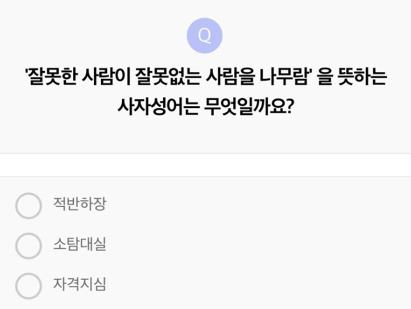 18ÀÏ ¸®ºê¸ÞÀÌÆ®¿¡¼­´Â 'À߸øÇÑ »ç¶÷ÀÌ À߸ø¾ø´Â »ç¶÷À» ³ª¹«¶÷'À» ¶æÇÏ´Â »çÀÚ¼º¾î´Â ¹«¾ùÀϱî¿ä?¶ó´Â ÄûÁî°¡ ÃâÁ¦µÆ´Ù.