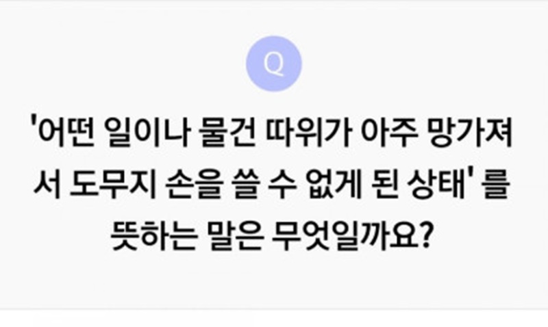10ÀÏ ¸®ºê¸ÞÀÌÆ®¿¡¼­´Â '¾î¶² ÀÏÀ̳ª ¹°°Ç µûÀ§°¡ ¾ÆÁÖ ¸Á°¡Á®¼­ µµ¹«Áö ¼ÕÀ» ¾µ ¼ö ¾ø°Ô µÈ »óŸ¦ ¶æÇÏ´Â ¸»Àº ¹«¾ùÀϱî¿ä?'¶ó´Â ÄûÁî°¡ ÃâÁ¦µÆ´Ù.