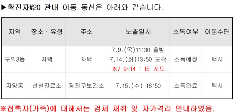 [Äڷγª19 ¼Óº¸] ±¤Áø±¸Ã», ±¸ÀÇ 3µ¿ °ÅÁÖ 70´ë È®ÁøÀÚ À̵¿°æ·Î °ø°³