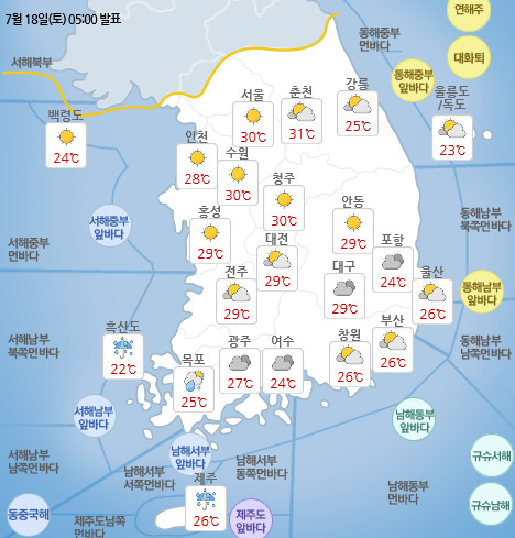 ¿À´Ã(18ÀÏ) ³¯¾¾, °æ±â¡¤°­¿ø ¼Ò³ª±â¡¦ ³· ÃÖ°í±â¿Â 31µµ