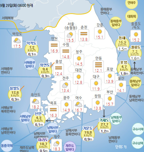 ¿À´Ã(29ÀÏ)³¯¾¾, Àü±¹ ´ëü·Î ¸¼°í ³»·ú Á᫐ ¾ÆÄ§ ±â¿Â 10µµ¡é '½Ò½Ò'
