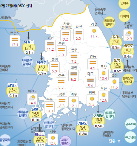 ¿À´Ã(27ÀÏ)³¯¾¾, ¿ÀÀü Áß Â£Àº ¾È°³ À¯ÀÇ¡¦¾ÆÄ§ ÃÖÀú ±â¿Â 5µµ ÀÌÇÏ¡é