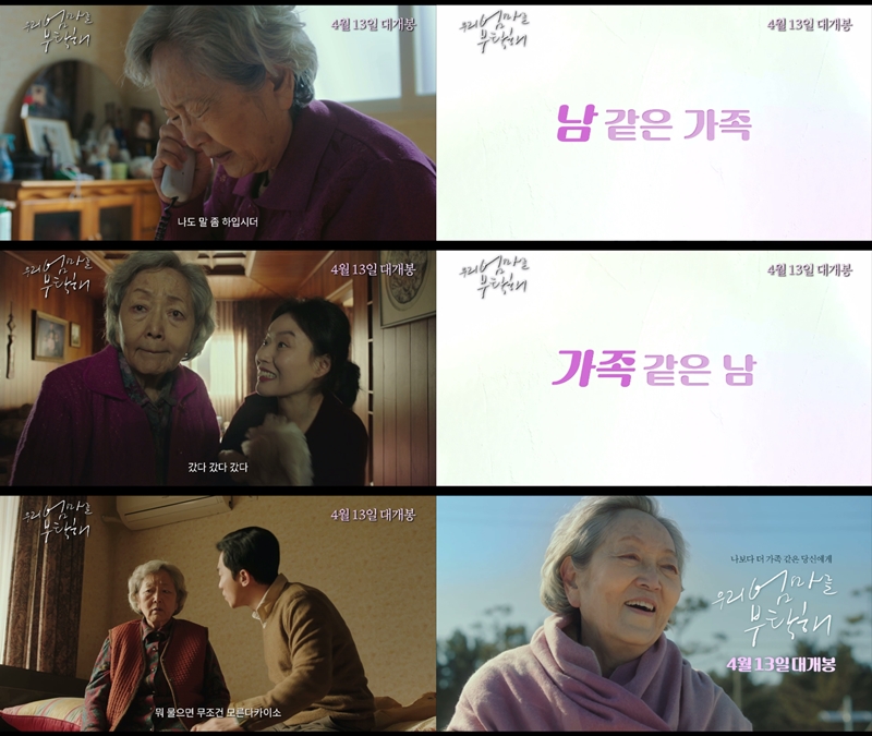 ¡®¿ì¸® ¾ö¸¶¸¦ ºÎÅ¹ÇØ¡¯´Â ¿Â °¡Á·ÀÌ ±ØÀå¿¡¼ Áñ±æ ¼ö ÀÖ´Â ãæ°¡Á·±ØÀ¸·Î Çö´ë°¡Á·¿¡ ´ëÇÑ ½Ã´ë»óÀ» ±×·Á³½´Ù. °í·ÉÈ ½Ã´ë, Æò»ý ǰ¿¡ ³¢°í »ì ÁÙ ¾Ë¾Ò´ø ºÎ¸ð ÀÚ½Ä °£ÀÇ °ü°è¿¡ ºÎ¾ç ºÎ´ã°ú Á¹¿¬, ´ë¾È°¡Á·¿¡ ´ëÇÑ µû¶æÇÑ ½Ã¼±°ú Áö±Ý ¿ì¸® »çȸ¿¡¼ °¡Á·ÀÇ ÁøÁ¤ÇÑ Àǹ̿¡ ´ëÇÑ ÈµÎ¸¦ ´øÁö¸ç °¡Á·µå¶ó¸¶ÀÇ »õ ÀåÀ» ¿¬´Ù.