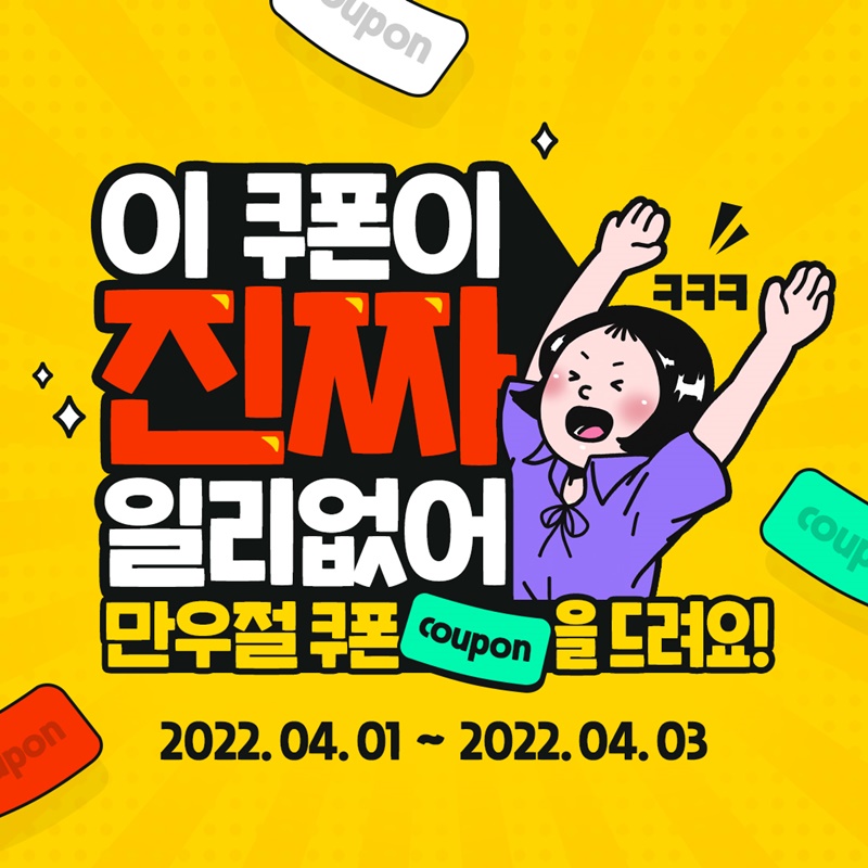 ¸¸¿ìÀýÀÇ Æ¯º°ÇÑ ³¯À» ±â³äÇϱâ À§ÇØ ³î¶ø°Ôµµ ÁøÂ¥ ÄíÆù º¸´Ù ÁÁÀº »½ ÄíÆù¿¡´Â ¡ã¿µÈ­ °ü¶÷±Ç, ¡ã½ºÀ§Æ®ÄÞº¸ ±³È¯±Ç, ¡ã¿µÈ­ 6õ¿ø ÇÒÀαÇ, ¡ãź»êÀ½·á M ±³È¯±Ç, ¡ã¿µÈ­ 2õ¿ø ÇÒÀαÇ, ¡ã¹Ý¹ÝÄÞº¸ 3õ¿ø ÇÒÀαÇÀÌ Áö±ÞµÇ¾î ÁøÂ¥ ÄíÆù º¸´Ù´Â »½ ÄíÆùÀ» ¹Þ±æ ¹Ù¶ó´Â »ö´Ù¸¥ ±âºÐÀ» ´À³¥ ¼ö ÀÖ´Ù.