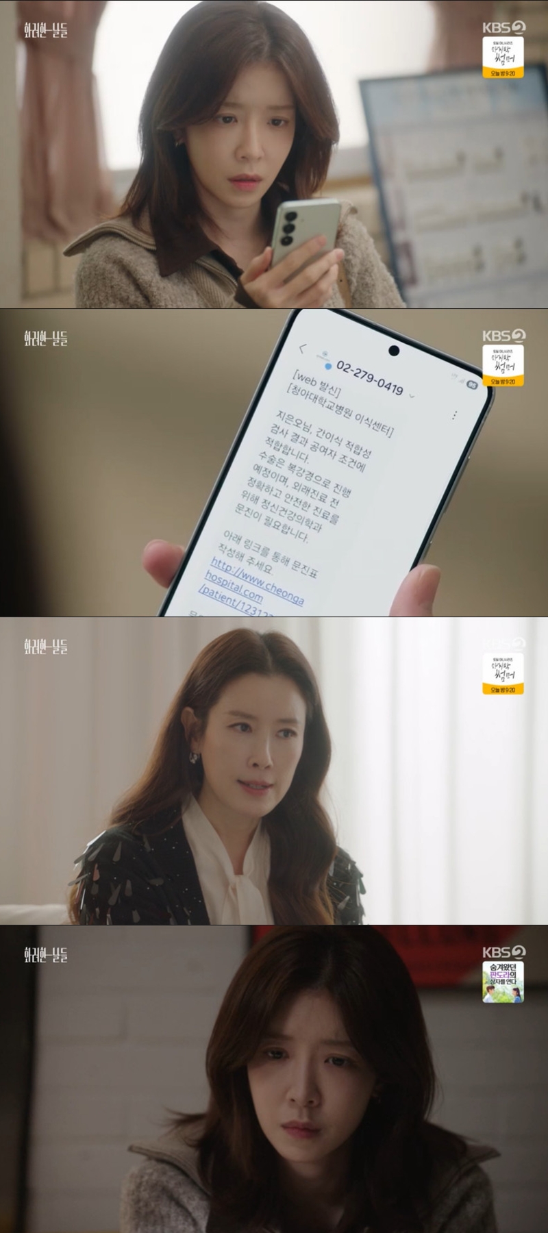 15ÀÏ ¹æ¼ÛµÈ KBS1 'È­·ÁÇÑ ³¯µé' 29È­¿¡¼­´Â °í¼ºÈñ(ÀÌŶõ)ÀÌ ÁöÀº¿À(Á¤Àμ±)ÀÇ °£ÀÌ½Ä ¼ö¼ú µ¿ÀǸ¦ ¹Þ±â À§ÇØ È¥½ÅÀÇ ´«¹° ¿¬±â¸¦ ÆîÃÆ´Ù.