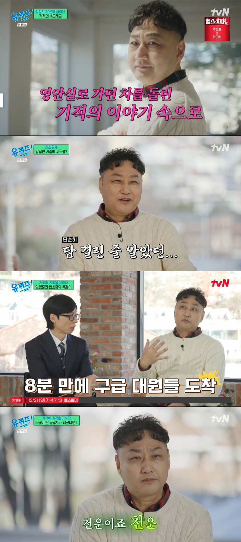 10ÀÏ ¹æ¼ÛµÈ tvN 'À¯ ÄûÁî ¿Â ´õ ºí·°'(ÀÌÇÏ 'À¯ÄûÁî')¿¡´Â ½ÉÁ¤Áö 20ºÐ ¸¸¿¡ ±âÀûÀûÀ¸·Î »ì¾Æ³­ ±è¼ö¿ëÀÌ Ã⿬Çß´Ù.