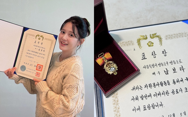 °ø°³µÈ »çÁø¿£ ÀÌÀç¸í ´ëÅë·ÉÀ¸·ÎºÎÅÍ ¹ÞÀº ǥâÀåÀ» µé°í ¹Ì¼Ò Áþ°í ÀÖ´Â ³²º¸¶óÀÇ ¸ð½ÀÀÌ ´ã°å´Ù. ³²º¸¶ó°¡ ¹ÞÀº ´ëÅë·É ǥâÀå¿¡´Â '±ÍÇÏ´Â ÀÚ¿øºÀ»çȰµ¿À» ÅëÇÏ¿© ±¹°¡ »çȸ ¹ßÀü¿¡ À̹ÙÁöÇÑ °ø·Î°¡ Å©¹Ç·Î ÀÌ¿¡ ǥâÇÕ´Ï´Ù'¶ó°í ÀûÇôÀÖ´Ù.