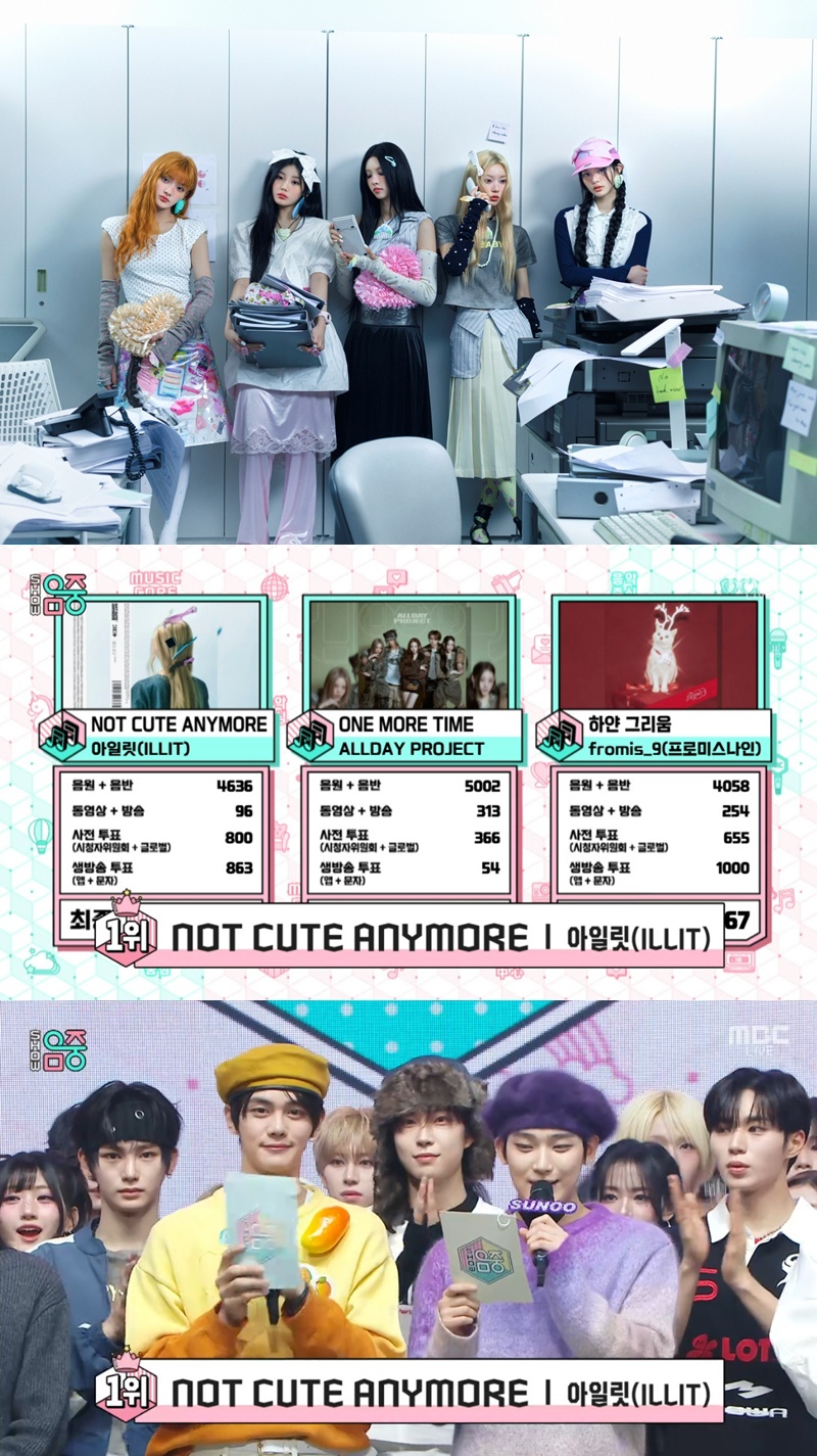 17ÀÏ ¹æ¼ÛµÈ MBC '¼î! À½¾ÇÁß½É'¿¡´Â ¾ÆÀϸ´ 'NOT CUTE ANYMORE', ¿Ãµ¥ÀÌ ÇÁ·ÎÁ§Æ® 'ONE MORE TIME', Æ÷¸£¹Ì½º³ªÀÎ 'ÇÏ¾á ±×¸®¿ò'ÀÌ 1¿ù ¼Â° ÁÖ 1À§ Èĺ¸¿¡ À̸§À» ¿Ã·È´Ù.