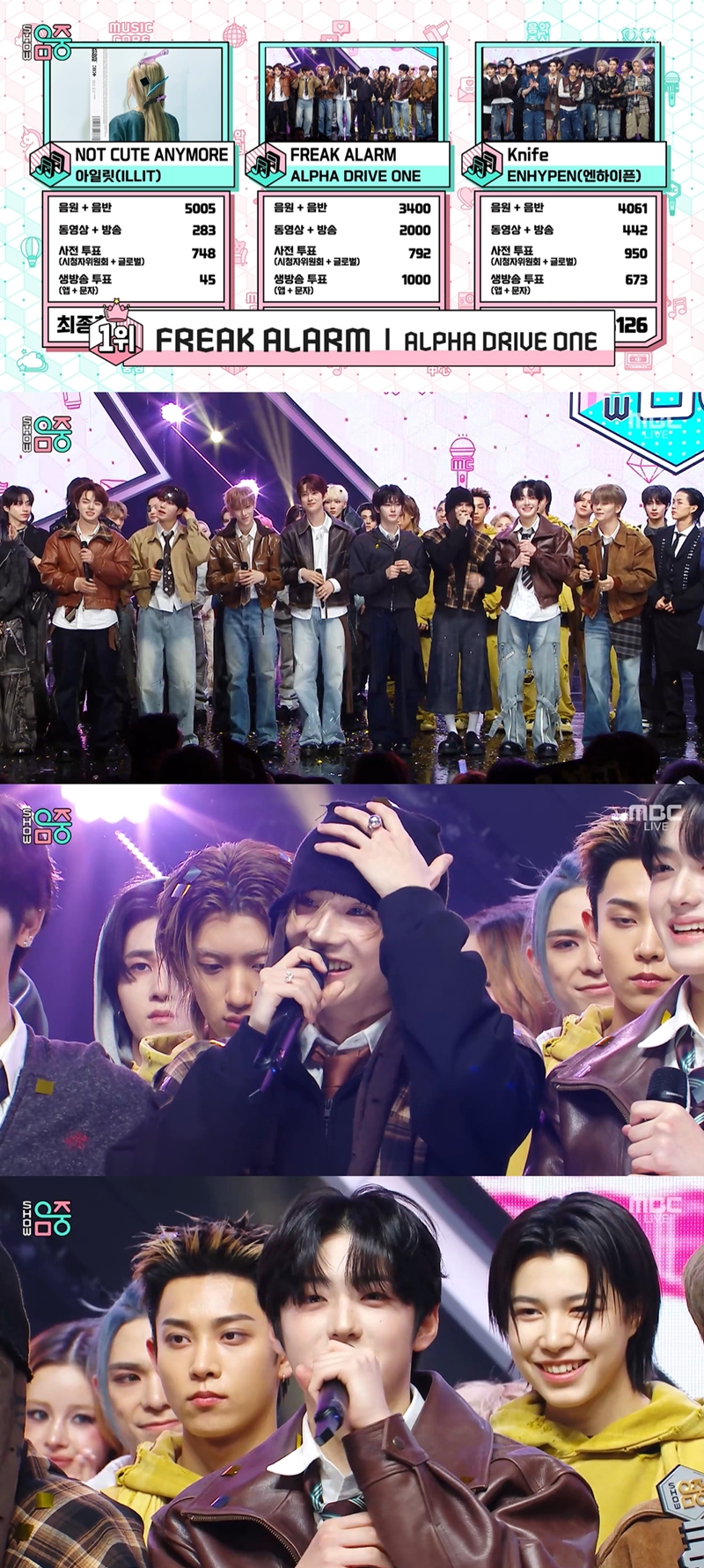 À̹ø ÁÖ 1À§ Èĺ¸¿¡´Â ¾ÆÀϸ´ ¡®³´ ťƮ ¾Ö´Ï¸ð¾î(NOT CUTE ANYMORE)¡¯, ¾ËÆÄµå¶óÀÌºê¿ø ¡®ÇÁ¸¯ ¾Ë¶÷(FREAK ALARM)¡¯, ¿£ÇÏÀÌÇ ¡®³ªÀÌÇÁ(Knife)¡¯°¡ ¿Ã¶ú´Ù. ½Ç½Ã°£ ¹®ÀÚ ÅõÇ¥¸¦ ÇÕ»êÇÑ °á°ú, ¾ËÆÄµå¶óÀÌºê¿øÀÇ ¡®ÇÁ¸¯ ¾Ë¶÷¡¯ÀÌ 1À§¸¦ Â÷ÁöÇß´Ù.