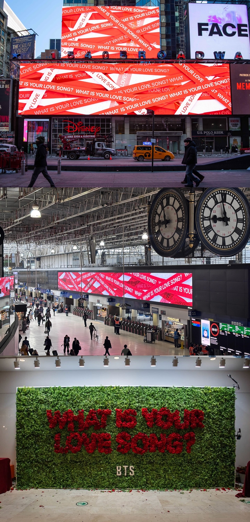 [¼¿·´¹Ìµð¾î Àü¿¹½½ ±âÀÚ] ¼­¿ï°ú ´º¿å, ·±´ø µµ½É ÇѺ¹ÆÇ¿¡ Àǹ®ÀÇ Áú¹®ÀÌ ¶°¿Ã¶ú´Ù. ¼º¼ö¿ª Àα٠°Ç¹° ¿Üº®Àº ¡®WHAT IS YOUR LOVE SONG?¡¯À̶ó´Â ¹®±¸·Î µÚµ¤¿© ¼ö¸¹Àº »ç¶÷µéÀÇ ½Ã¼±À» »ç·ÎÀâ¾Ò´Ù. ´º¿å ¸ÇÇØÆ° ŸÀÓ½ºÄù¾î ´ëÇü Àü±¤ÆÇ°ú À̽ºÆ® ºô¸®Áö, ¼ÒÈ£, ºê·çŬ¸° °Å¸® °÷°÷¿¡µµ °°Àº Áú¹®ÀÌ ÀûÈù ´ëÇü Æ÷½ºÅͰ¡ °É·È´Ù. ·±´ø ÃÖ´ë ±Ô¸ðÀÇ ±âÂ÷¿ª ¿öÅзç¿Í ºê¸®Áö ¿ª¿¡´Â ´ëÇü LED¸¦ ÅëÇØ ÀÌ ¹®ÀåÀÌ ¼ÛÃâµÆ´Ù.