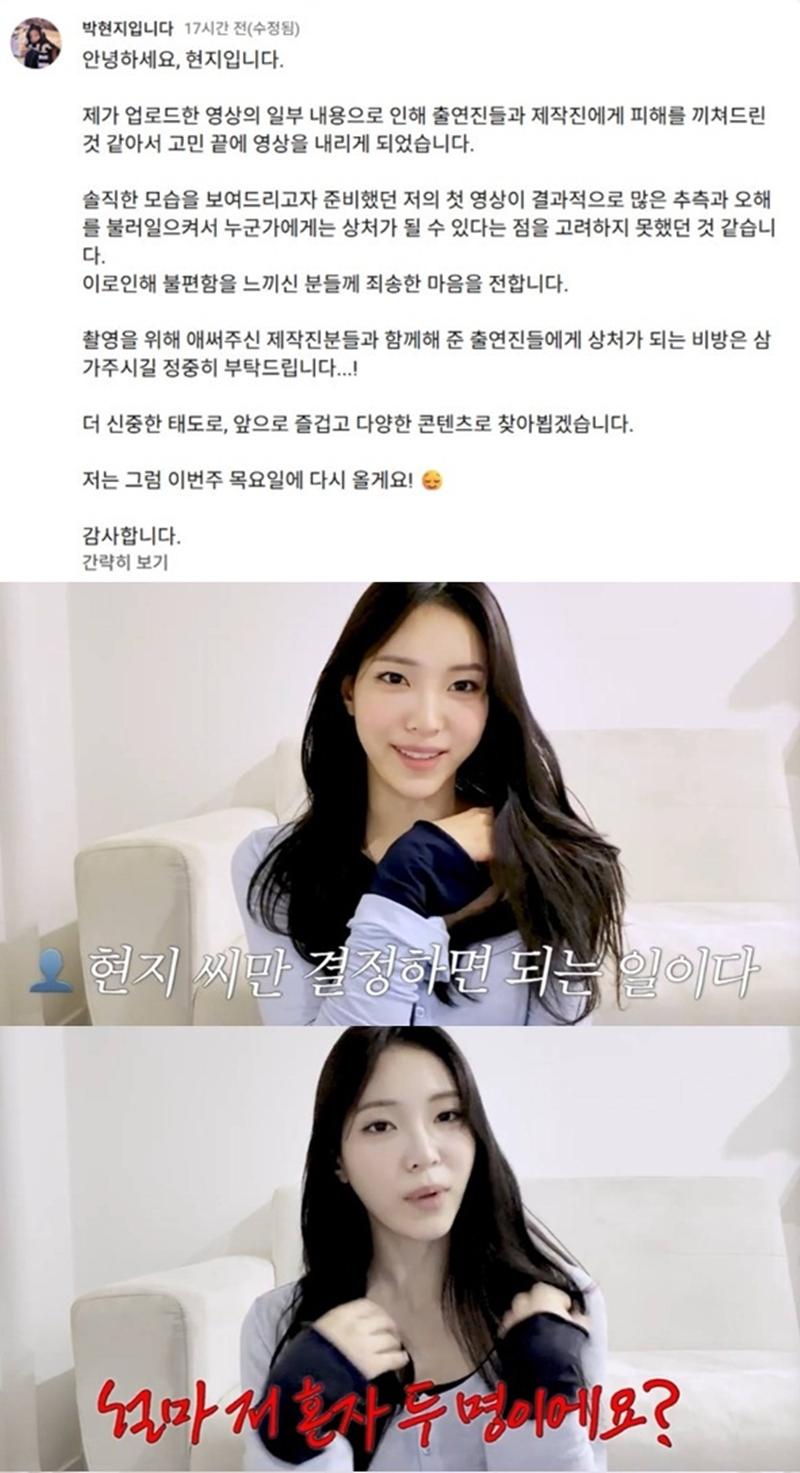 ¹ÚÇöÁö´Â Áö³­ 3ÀÏ ÀÚ½ÅÀÇ À¯Æ©ºê ä³ÎÀÇ Ä¿¹Â´ÏƼ¸¦ ÅëÇØ ¡°Á¦°¡ ¾÷·ÎµåÇÑ ¿µ»óÀÇ ÀϺΠ³»¿ëÀ¸·Î ÀÎÇØ Ã⿬Áøµé°ú Á¦ÀÛÁø¿¡°Ô ÇÇÇØ¸¦ ³¢Ãĵ帰 °Í °°¾Æ¼­ °í¹Î ³¡¿¡ ¿µ»óÀ» ³»¸®°Ô µÆ´Ù¡±¶ó°í ¾Ë·È´Ù.
