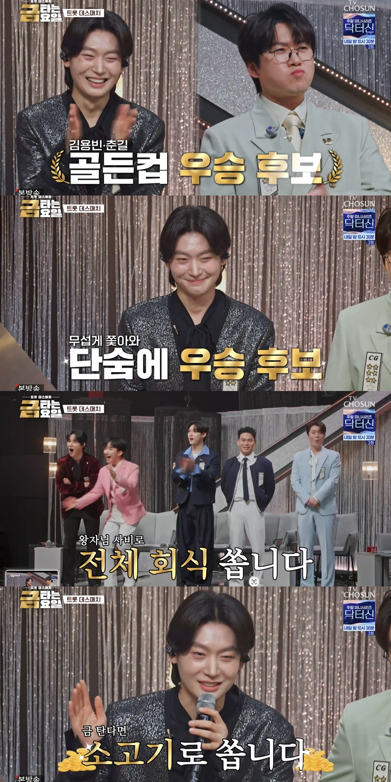 À̳¯ °æ¿¬¿¡ ¾Õ¼­ ±è¿ëºó°ú Ãá±æÀÌ 6½ºÅ¸·Î °øµ¿ 1À§·Î °­·ÂÇÑ ¿ì½ÂÈĺ¸¿¡ ¿Ã¶ú´Ù. MC ºÕÀº "±è¿ëºó ¾¾ Á¤¸» ¹«¼·´Ù. óÀ½¿¡´Â º°ÀÌ ¾ø¾ú´Âµ¥ ¾î´À»õ Àλý ¿ªÀü±îÁö ³ë¸®°í ÀÖ´Ù"¶ó¸ç "±Ý°íÀÇ ±â¿îÀ̳Ä"¶ó°í ¹°¾ú´Ù.