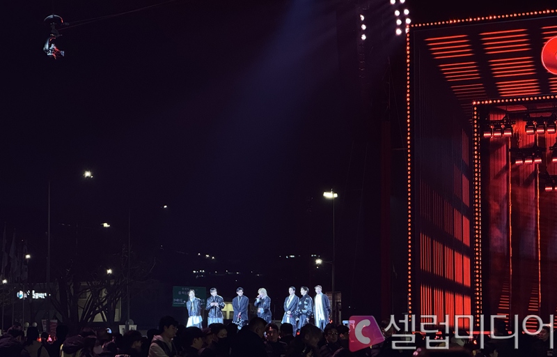 ¹æÅº¼Ò³â´ÜÀº 21ÀÏ ¿ÀÈÄ 8½Ã ¼­¿ï Á¾·Î±¸ ±¤È­¹® ±¤Àå¿¡´Â 'BTS ÄÄ¹é ¶óÀ̺ê: ARIRANG'À» ¿­¾ú´Ù. À̳¯ ½Åº¸ÀÇ Å¸ÀÌÆ²°î 'SWIM'À» ºñ·ÔÇÑ ½Å°î ÆÛÆ÷¸Õ½º¸¦ ´ëÁß ¾Õ¿¡¼­ ÃÖÃÊ °ø°³Çß´Ù.