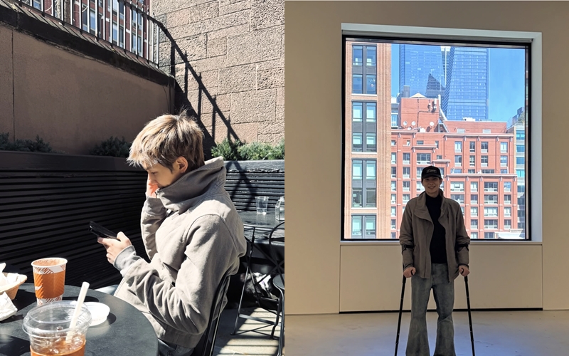 »çÁø ¼Ó¿¡´Â RMÀÇ ÀÏ»ó »çÁøÀÌ ´ã°å´Ù. RMÀº Æí¾ÈÇÑ Â÷¸²À¸·Î Ä«Æä¿¡ ¾É¾Æ ÇÞ»ìÀ» Áñ±â°Å³ª, dz°æÀ» ¹Ù¶óº¸°í ÀÖ´Ù.
