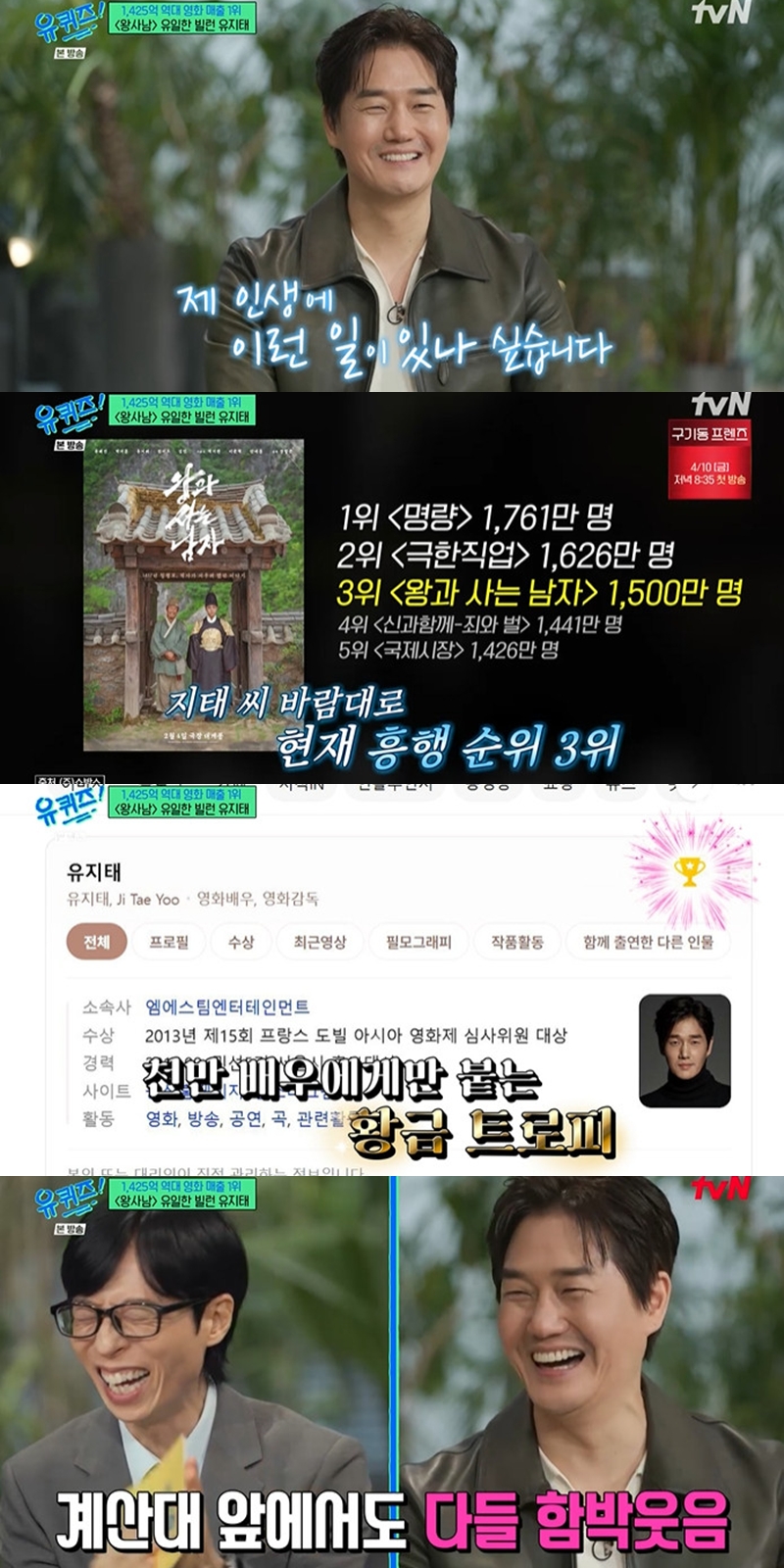 ±×´Â "ÈïÇà ¼øÀ§ ¿ª´ë 3À§ Çѱ¹ ¿µÈ­°¡ µÆÀ¸¸é ÇÑ´Ù"¶ó´Â ¼Ò¸ÁÀ» µå·¯³Â´Ù. MC À¯Àç¼®ÀÌ "¿Ö 1À§°¡ ¾Æ´Ï³Ä"¶ó°í ¹¯ÀÚ, À¯ÁöÅ´ "1À§ ³Ê¹« ³õ´Ù. 1700¸¸"À̶ó¸ç Çô¸¦ ³»µÑ·¶´Ù. À̾î "¸ÅÃâ ¼øÀ§·Î Çϸé ÀúÈñ°¡ 1µîÀÏ ¼ö ÀÖ´Ù°í ÇÏ´õ¶ó. ¿¹ÀüÀ̶û ƼÄϰªÀÌ ´Þ¶ó¼­"¶ó°í µ¡ºÙ¿´´Ù.