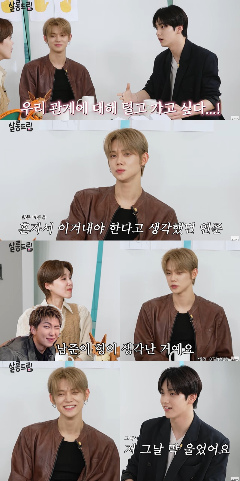 µÎ »ç¶÷ »çÀ̰¡ Ç®¾îÁö°Ô µÈ °è±â¿¡´Â ¹æÅº¼Ò³â´Ü RMÀÌ ÀÖ¾ú´Ù°í. ¿¬ÁØÀº "RMÇüÀ» ã¾Æ°¡¼­ ÀÌ·± Àú·± À̾߱⸦ Çß´õ´Ï ÇüÀÌ 'ºÒÆíÇÑ °ÍµéÀ» ¸¶ÁÖÇßÀ¸¸é ÁÁ°Ú´Ù'°í Çß´Ù. ±× ¸»À» µè°í ¼öºó°úÀÇ ¾î»öÇÔµµ Ç®°í ½Í´Ù´Â »ý°¢ÀÌ µé¾ú´Ù. ³ª ¿ª½Ã À߸ø »ý°¢ÇÑ ºÎºÐÀÌ ¸¹¾Ò´ø °Í °°¾Ò´Ù"°í ¸»Çß´Ù.
