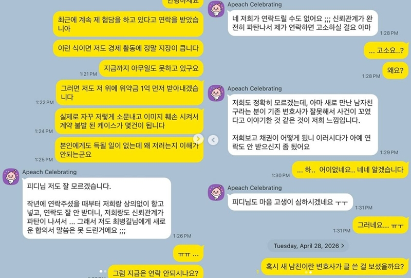 ¶ÇÇÑ ¡°¼­À¯¸® ÃøÀÌ Áý¿äÇÏ°í °ø°ÝÀûÀ¸·Î ¿¬¶ôÀ» ÇØ¿Í ½ºÅäÅ·¿¡ °¡±î¿î ¼öÁØÀ¸·Î ´À²¸Á³´Ù¡±¶ó¸ç ¡°ÀÌ ¶§¹®¿¡ º¯È£»ç¸¦ ÅëÇØ¼­¸¸ ¼ÒÅëÇØ´Þ¶ó°í ¿äûÇÑ °Í¡±À̶ó°í ¼³¸íÇß´Ù. ¾Æ¿ï·¯ ¡°¹ý¹«´ë¸®ÀÎÀÌ ¹Ù²î¾ú´Ù¸é Á÷Á¢ ¿¬¶ô ´Þ¶ó¡±¶ó¸ç ¡°º¯È£»ç ¿¬¶ôÀ» Â÷´ÜÇÑ ÀûÀº ¾ø´Ù¡±¶ó°í µ¡ºÙ¿´´Ù.